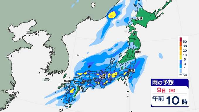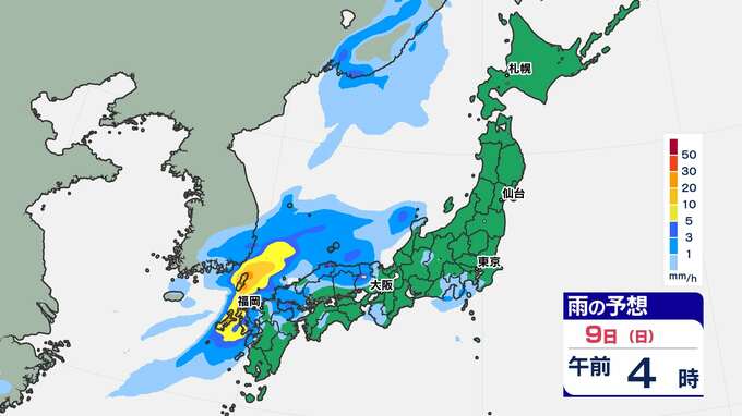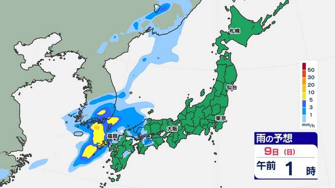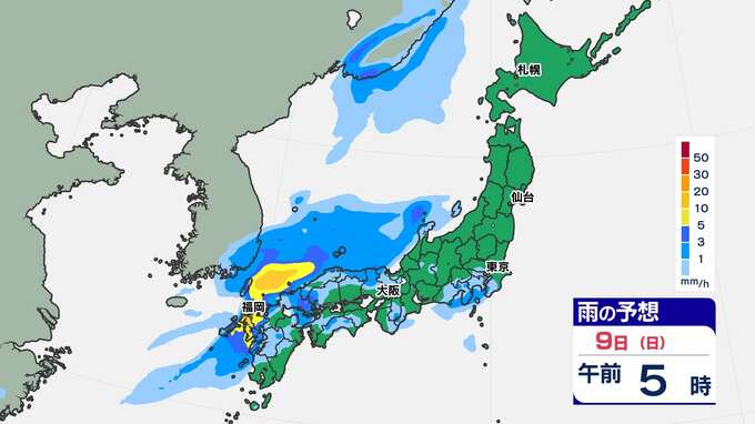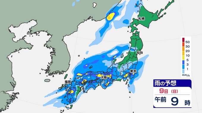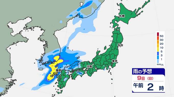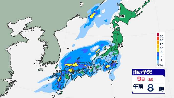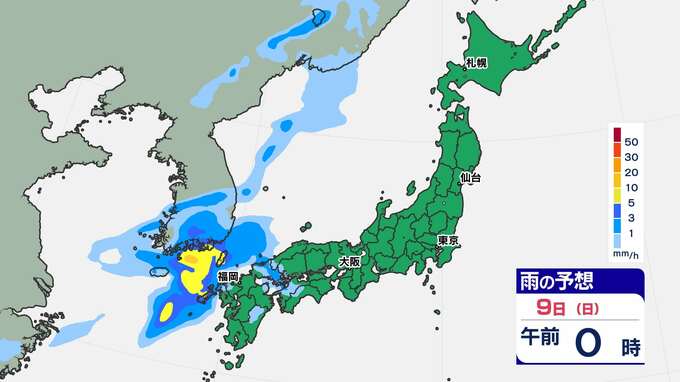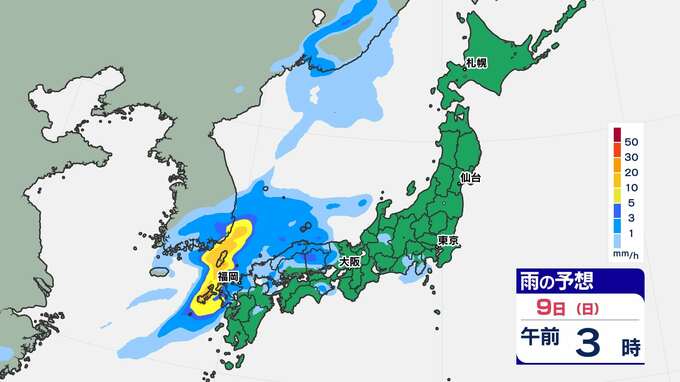【前線通過】あす全国的に雨の”日曜日”東京は12月上旬並みの14℃「雨はいつから?」【雨のシミュレーション / 全国各都市の週間予報】九州は日付が変わるころから雨 南日本放送 2025年11月8日(土) 20:00 国内 天気 9日(日)雨のシミュレーション 活発な雨雲が予想されている時間帯は、九州北部は〈未明~午前中〉、近畿地方は〈昼前〉、東海地方は〈昼過ぎ〉、関東地方は〈夕方〉の見込みです。画像で確認できます。