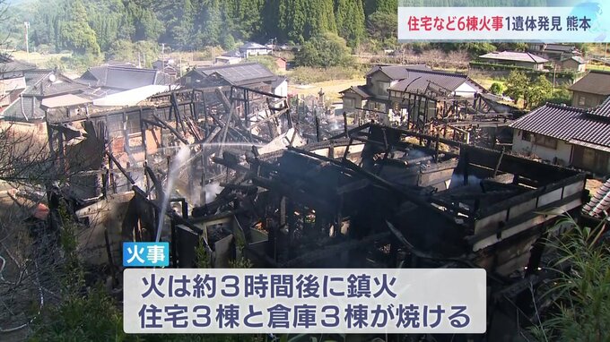 きょう午前、熊本県八代市で住宅や倉庫など6棟が焼ける火事があり、1人の遺体が見つかりました。警察と消防によりますと、きょう午前9時すぎ、熊本県八代市東陽町で「住宅の1室から火が出ました」と、住人から119…
