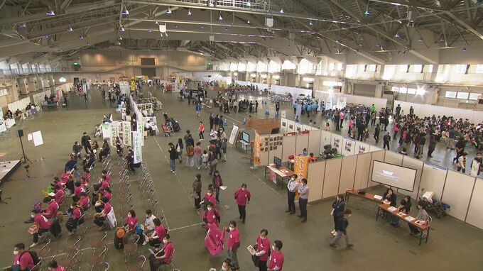 人材不足が課題の一つとされる介護・福祉業界へ子どもたちに興味や関心を持ってもらおうと仕事を体験できるイベントが金沢市で8日開かれました。