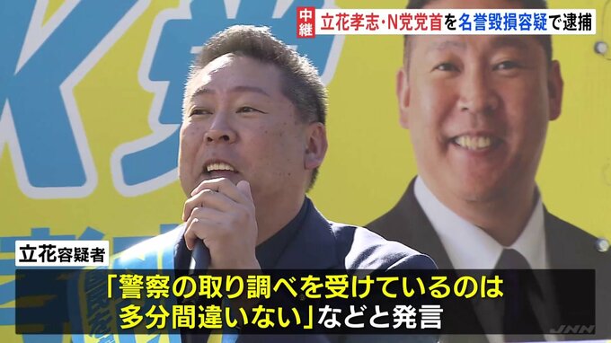 元兵庫県議の名誉を毀損した疑いで、警察はNHKから国民を守る党の党首・立花孝志容疑者を逮捕しました。兵庫県警本部前からお伝えします。立花容疑者は警察の取り調べにもきちんと応じているということです。警察…