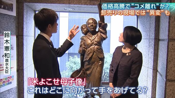 4日、消費者団体を訪ねた鈴木農水大臣が案内されたのは、1932年に起きた「米よこせ運動」の像です。