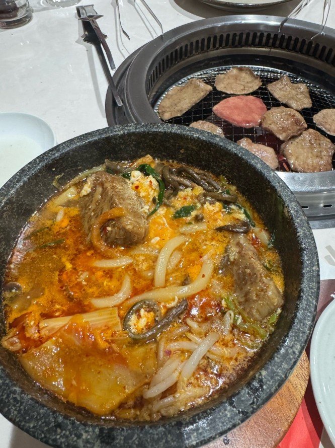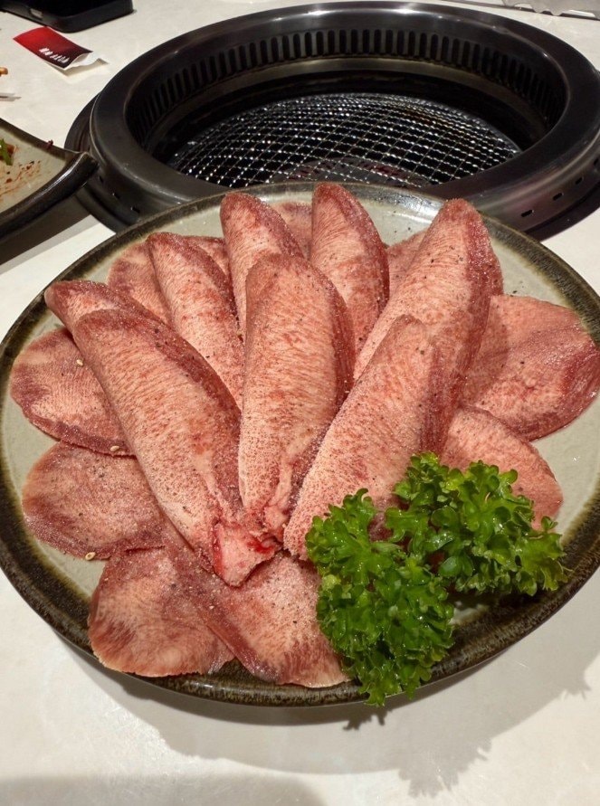 夕食は焼肉を選んだ花田さん。投稿された写真からは、薄切りの牛肉や牛タンなど豪華な焼肉の数々が確認できます。特に牛タンは淡いピンク色で、整然と並べられ、パセリが彩りを添えています。また、石鍋にはオレンジ色のスープに牛肉や玉ねぎ、緑の野菜が入った料理も写っていました。