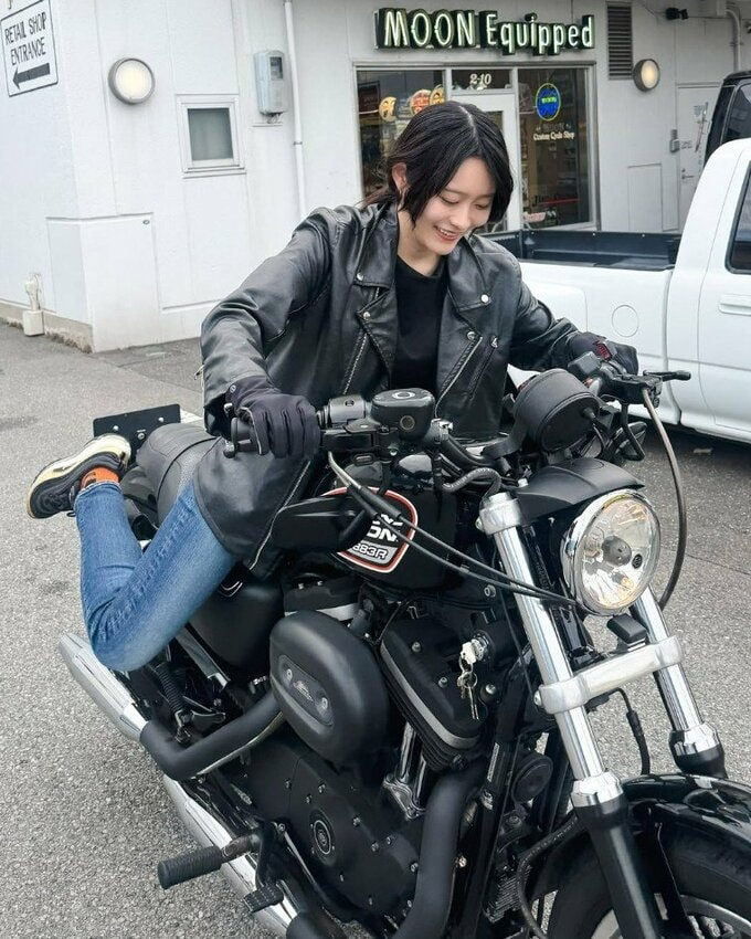 先日は「XL883Rが相棒になってからもう半年くらい経ちました」とテキスト。黒のライダーズコートを肩に掛け、デニムの脚を路面に伸ばして愛車ハーレー・ダビッドソンXL883Rに跨がってポーズを取る写真をアップ。