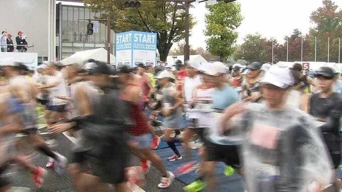 午前8時45分、号砲が鳴ると、約1万6000人のランナーが一斉に市街地に飛び出していきました。