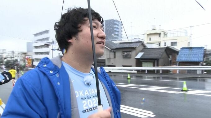 雨の中、懸命に走る参加者をシャインマスカットやご当地ラーメンなどおかやまマラソン名物のおもてなし給食で後押し。