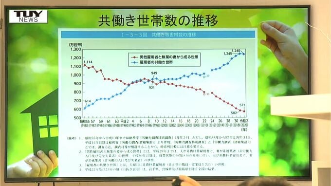 滝村さんによりますと、全国的に共働き世帯が増えている一方で、日本では夫が家事や育児にかける時間は海外と比べて少ないということです。パートナー同士が納得できる役割分担にするためには、「誰がどれだけやっているのか」を共有すること、そして家事や育児を自分事ととして捉えることが大切だと話しました。