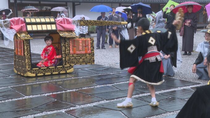 行列の最後ではやっこ姿の小学生がお姫様のかごの前で「草履舞」を演じました。