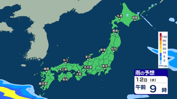 あす10日は北日本や北陸を中心に雨 12日~14日ごろにかけて沖縄・奄美では警報級の大雨となる恐れも【3時間ごとの雨シミュレーション・9日午後9時更新】