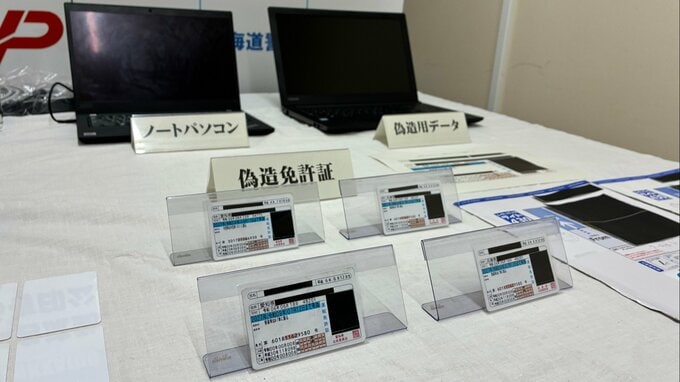フィッシング詐欺事件に関連し、自動車運転免許証4枚を偽造したとして、埼玉県の中国籍の30歳の男が再逮捕され、警察が押収した証拠品を公開しました。