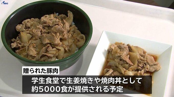 贈られた豚肉は岩手大学にある3つの学生食堂で、10日から生姜焼きや焼肉丼などに調理され、およそ5000食分が提供される予定です。