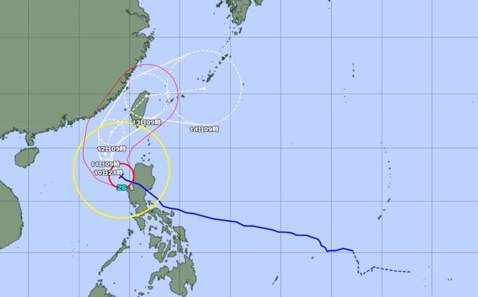 25m/s以上の暴風域 全域 130 km (70 NM)