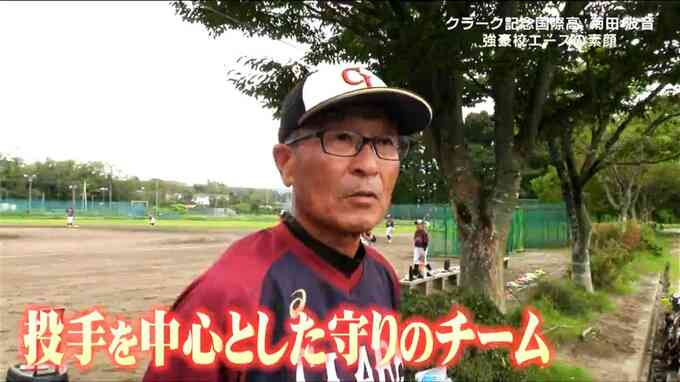 菊田投手について「エースですからね、彼女の活躍があってユース大会で優勝したわけで、社会人・大学になってもチームを引っ張っていけるような選手になれると思います」と高く評価する。