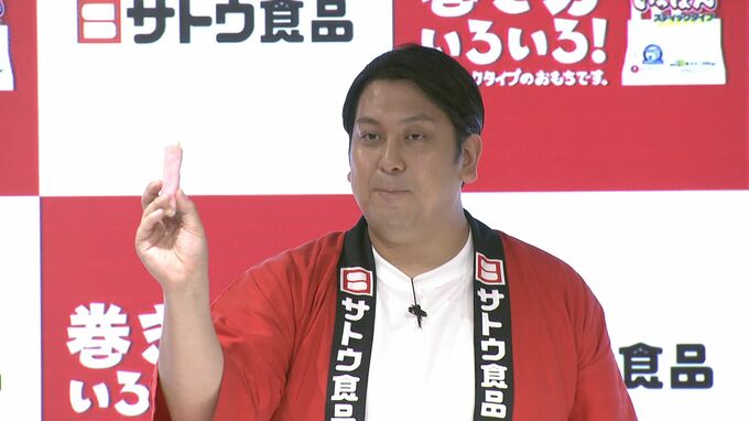 ジャンボさんは、手巻き餅のハムチーズを試食。“お餅がめちゃくちゃ甘くて美味しいんで、ハムとチーズって旨みの塊なのにお餅が負けないくらいちゃんと美味しい!サトウの切り餅のすごさ。「こんなにお餅って強いんだ」それを教えてくれる...”と、魅力を語りながら我慢できずにお餅を頬張り、会場を笑わせました。