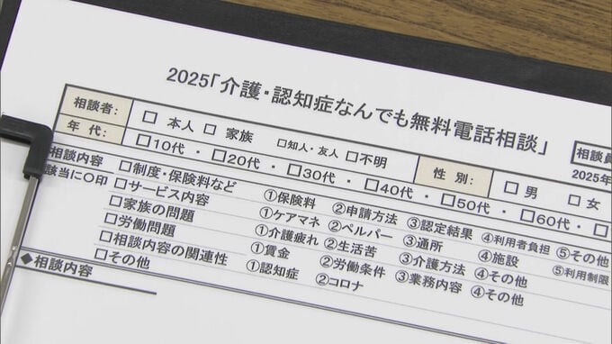 去年は、「夫が認知症で相談窓口を知りたい」「介護疲れが激しくどう介護したらよいかわからない」「入居先の介護施設が人手不足で気軽に相談できない」など全国で1400件を超える相談が寄せられたということです。