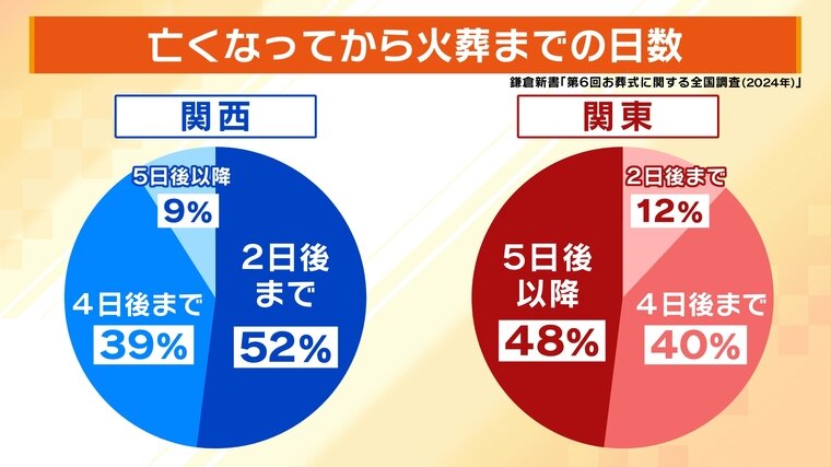 日本が“多死社会”へ向かっているなか、今、葬儀で問題になっているのが「火葬待ち」です。特に深刻なのが、関東。亡くなってから火葬までの日数が、関西と関東で違っているというデータもあります。