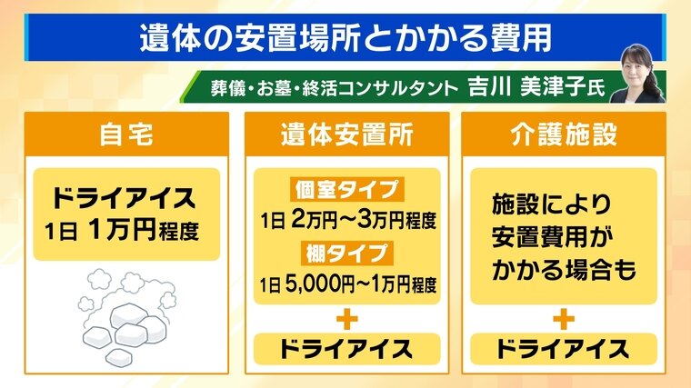 火葬待ちが増えると問題になるのが「遺体の安置」。安置する場所によって費用が変わってきます。