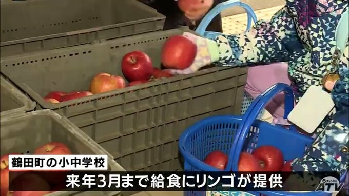 青森県鶴田町の学校給食に提供されるリンゴを各家庭から持ち寄る「りんご一籠運動」が始まり、児童たちがりんご籠を手に元気に登校しました。12日7時30分。鶴田小学校の児童たちが登校してきました。中にはリンゴ…