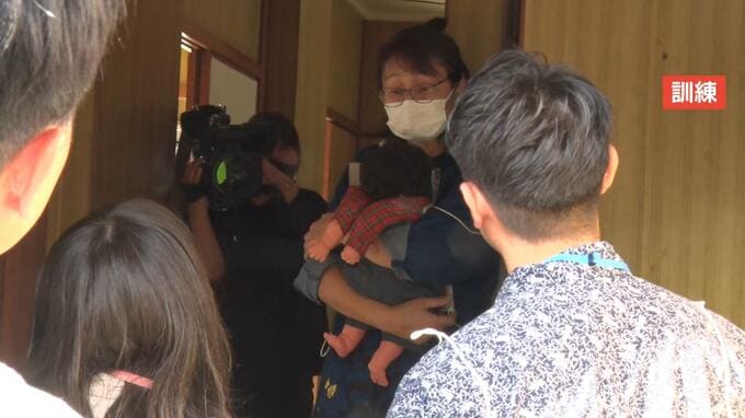 訓練では、出生届が出されていない2歳の男の子の母親が保健師や児童相談所の家庭訪問に応じないため、家庭裁判所の許可状に基づき強制的に家庭に入る「臨検捜索」をするとの想定で進められました。
