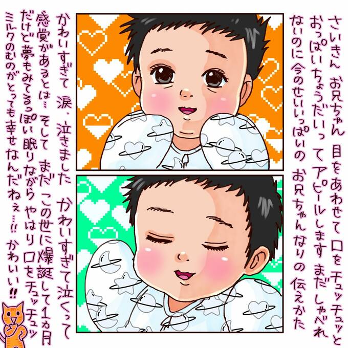 また「弟はミルク探す首フリフリがさいきんの必殺技です」と、赤ちゃんそれぞれの個性を親しみを込めて伝えています。
