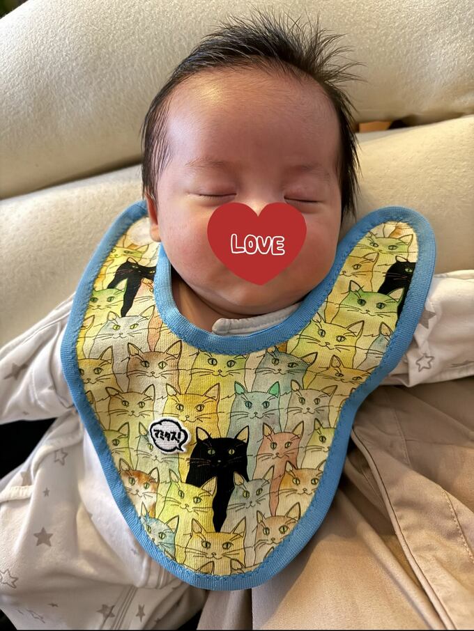 さらに、ファッションブランド「mmts」を展開するビームスからは、中川さんの父・勝彦さんが描いた猫の絵柄のスタイ(よだれかけ)を贈られたことも報告。「世界に2枚しかない」「血を受け継いだ双子専用装備だ!」と喜びを表しています。