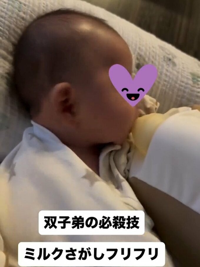 中川さんは「双子お兄ちゃん、言葉はまだ話せなくても、ミルクちょうだい!と伝えることができるのかわいすぎて泣いてしまった!」と、喜びを表現しています。