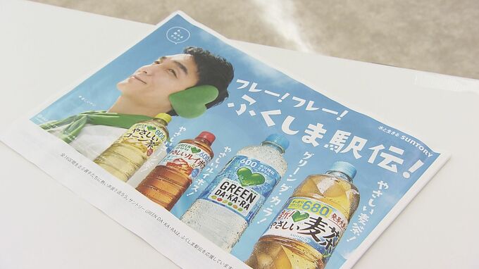 「ふくしま駅伝」は、白河市から福島市まで16区間、96.3キロを駆け抜ける市町村対抗駅伝で、今年で37回目を迎えます。大会を前に、7日、ふくしま駅伝に特別協賛しているサントリーグループから、出場チームを代表して白河市に、応援の際に使う手旗と大会協賛飲料の「GREENDA・KA・RA」が贈られました。