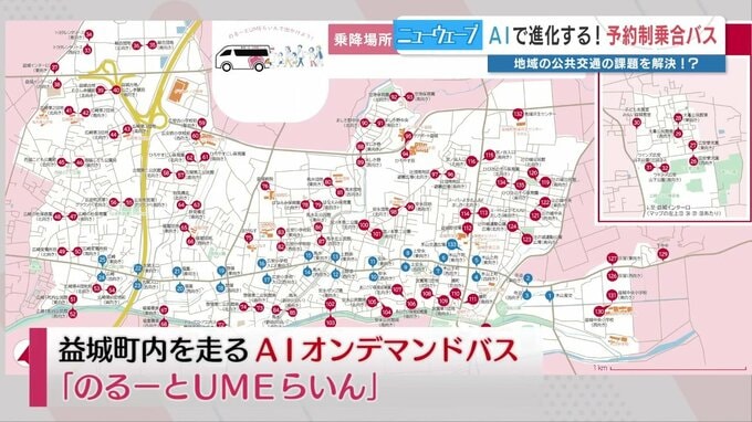 実は、『益城・西原空港ライナー』に先立ち、益城町では同じAIのシステムを使って、町内を走るAIオンデマンドバス『のるーとUMEらいん』を運行しています。