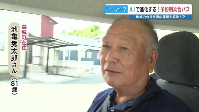池亀秀太郎さん「2年前に免許を返納したんですよ。このバスのおかげで外に出られる。それまでは家でじーっとしていた。バス停が家から遠かったから、使ったことが無かった」
