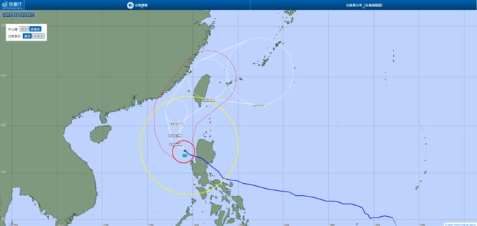 10日正午現在、南シナ海にある大型の台風26号は、今後強い勢力にまで発達しながら、台湾を横断して、沖縄へと進路を進めるとみられています。