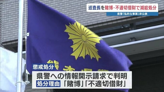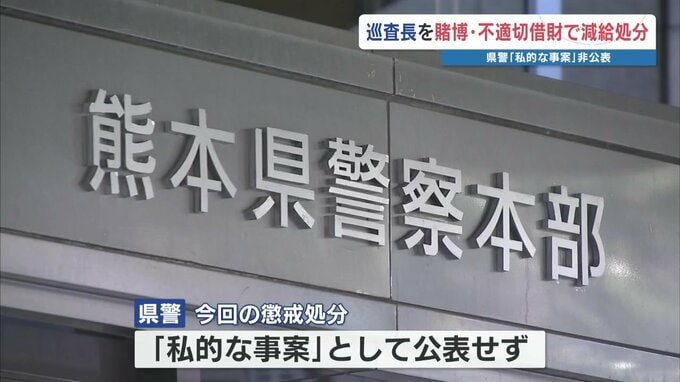 熊本県警の巡査長が、「賭博」と「不適切な借財」を理由に、10月に懲戒処分されていたことが分かりました。