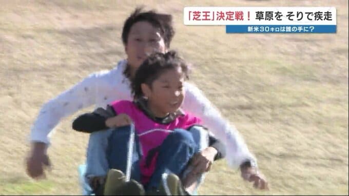 草原の斜面を「そり」に乗って、いかに早く滑り下りるかを競うイベントが熊本県西原村で開催されました。優勝賞品は新米30kg。熱い戦いが繰り広げられました。芝の斜面を颯爽と滑り降りる参加者たち。11月8日に開…