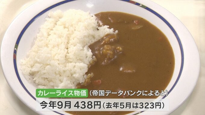 帝国データバンクが10日に発表したカレー1食にかかる材料費などを算出した今年9月のカレーライス物価は438円で、今年2月から400円台が続いています。