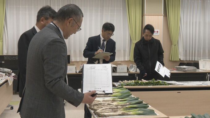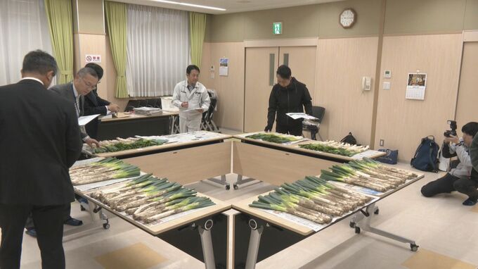 また品評会では生産者が育てたねぎが並び、太さや緑と白の部分のバランスなどをJAの職員が審査しました。