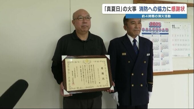 今年9月に熊本県八代市で住宅4棟が全焼した火事の際、消火活動に協力した現場近くのスーパーマーケットが表彰されました。
