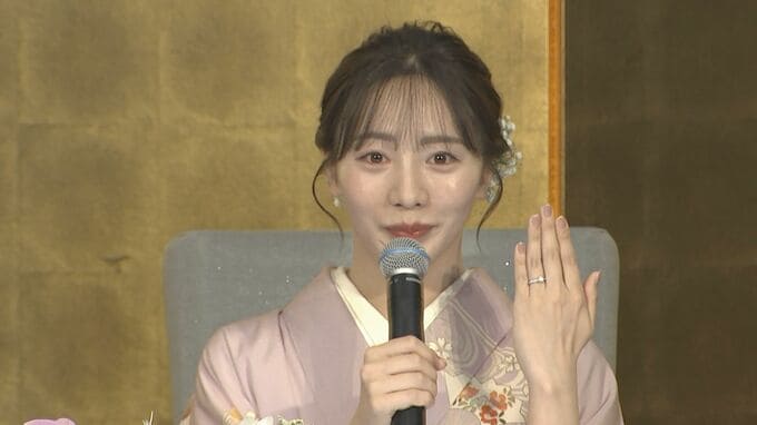 今回、能條さんは、義理の母となる三田寛子さんから譲り受けたというピンクの着物を着て報道陣の前に登場。