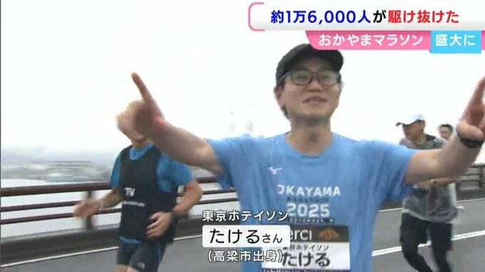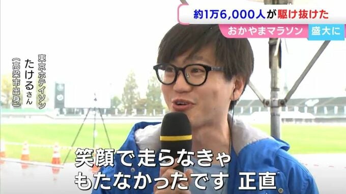 今年の大会には、高梁市出身の芸人、東京ホテイソンのたけるさんがゲストランナーとして出場。多くの参加者とふれ合いながら岡山路を駆け抜けました。
