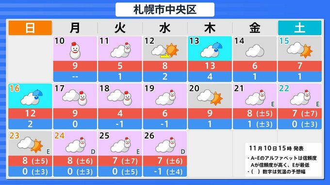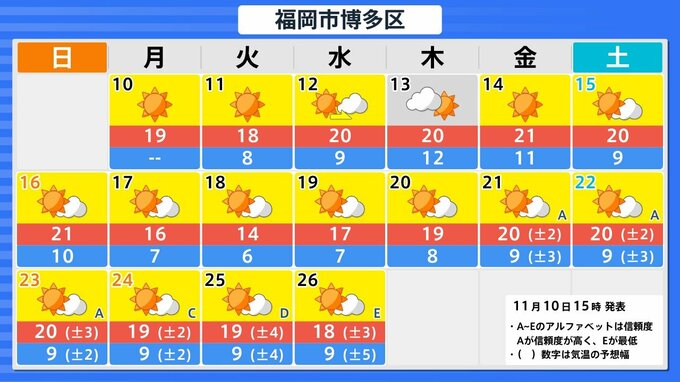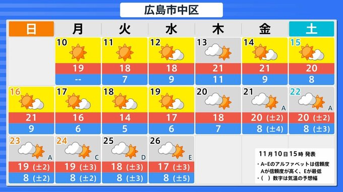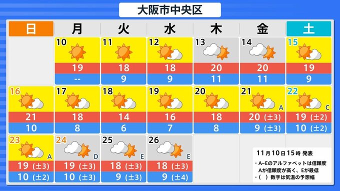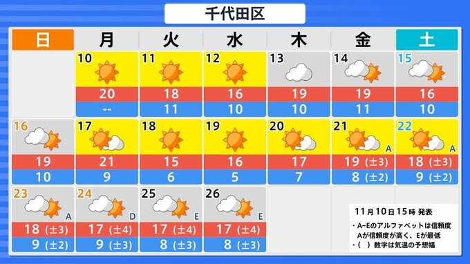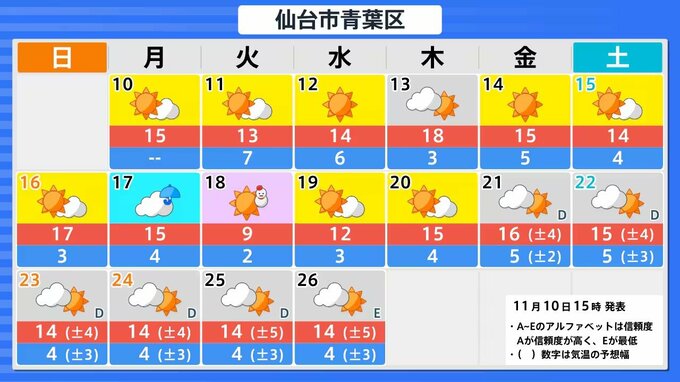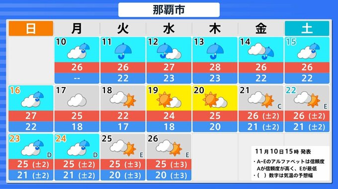 「台風26号」沖縄の南も予報円内に 予想進路&雨風シミュレーション&16日間天気予報【気象庁 台風情報 10日午後6時更新】 RSK山陽放送 2025年11月10日(月) 18:00 国内 天気 今後16日間の全国各地の天気予報 札幌・仙台・東京・名古屋・大阪・広島・福岡・那覇の16日間天気予報は以下の画像の通りです。 今後の気象情報に注意してください。
