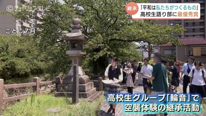 また、同世代を巻き込み、高校生グループ「輪音(わおん)」として、空襲体験を継承する活動に取り組んでいます。