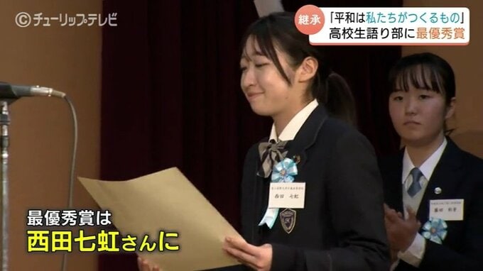世界平和弁論大会の最優秀賞には、自身の体験や活動から感じたメッセージの説得力が評価されて西田さんが輝きました。