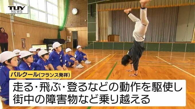山形県大石田町の小学校では、自分の身体のみを使って障害物の中を移動するパルクール教室が開かれ、子どもたちが全身を使って運動を行いました。