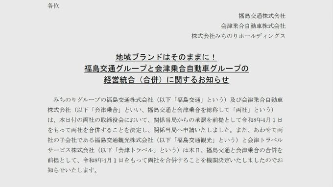 地域交通を担ってきた2つのバス会社が、合併することとなりました。中通りを中心に路線バスを運行する「福島交通」は、「会津乗合自動車」と、来年4月1日に、経営統合することとなりました。