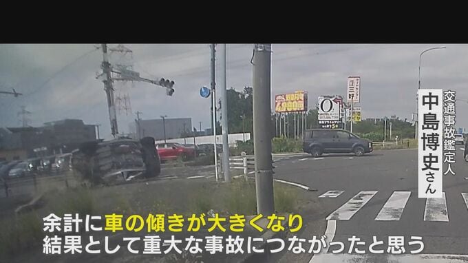 「交差点内では起こりやすい事故。今回は右折車のスピードが高かったために、乗用車を横向きに押す力が大きくて横転に至った可能性が高い。乗用車のハンドル操作があったことから余計に車の傾きが大きくなり、結果として重大な事故につながったと思う」