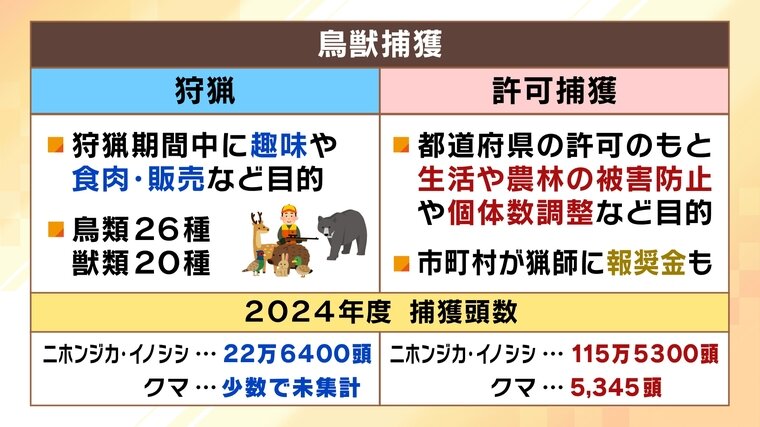 クマが増えているといわれていますが、そもそも鳥獣の“減らし方”には2種類の方法があります。
