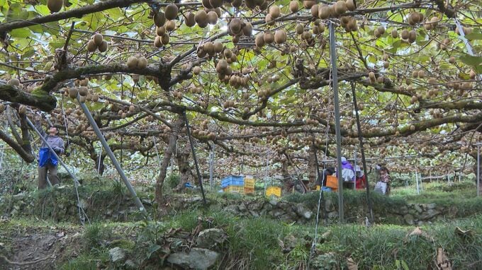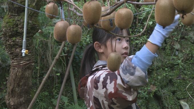 山口県阿武町で特産品のキウイの収穫が最盛期を迎えています。