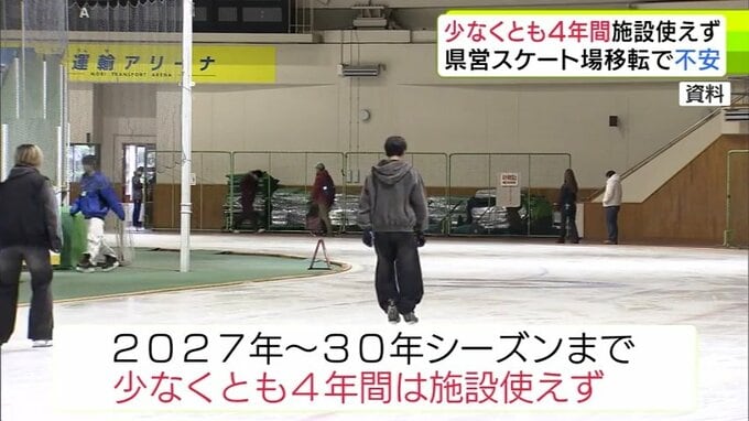 県営スケート場は、現在の施設が取り壊されてから新しい施設の供用がはじまるまで、少なくとも4年間使えない期間があり、競技団体から不安の声が上がっています。