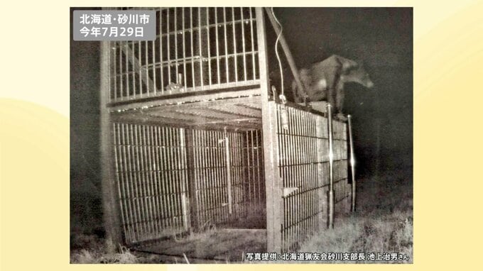 2025年7月の北海道・砂川市にて、クマが檻の中に入ろうとしていたのですが、クマは檻の上にいたというのです。