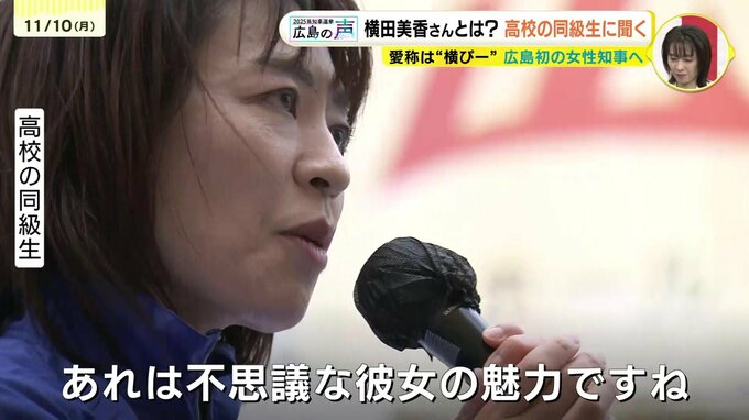 9日投開票が行われた広島県知事選。初当選した横田美香さんの人柄について、高校時代の同級生に聞きました。