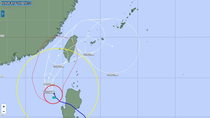 大型の台風26号は南シナ海を西北西に進んでおり、12日にかけて南シナ海を北上し、13日頃には台湾付近へ、14日頃には沖縄の南へと進み熱帯低気圧に変わる見込みです。