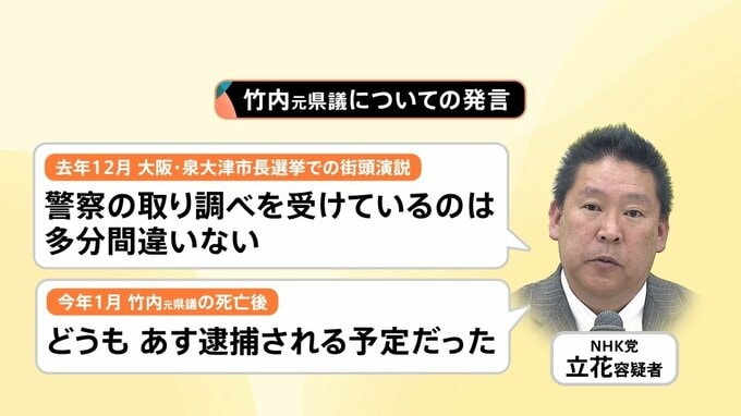 立花容疑者による、竹内元県議についての発言は下記のようなものがあります。