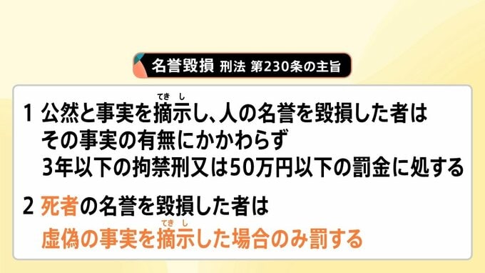 立花容疑者の今回の逮捕容疑である「名誉毀損」の主旨を見てみます。